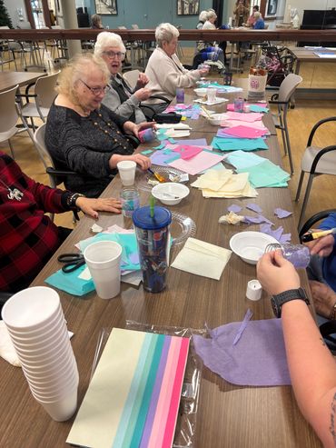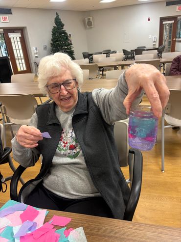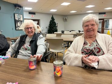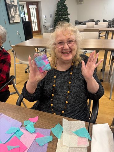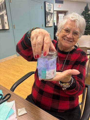 It looks like some of the independent living ladies are having a “tea”riffic time crafting tea light jars for their kitchens!